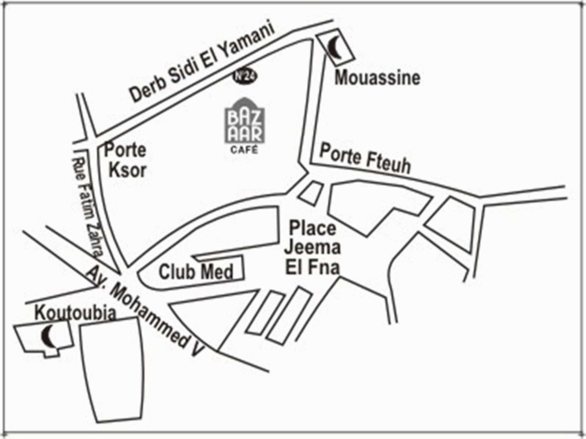À cinq minutes à pied de la place Jeema el Fna, situé dans le quartier historique et élégant de Mouassine, au cœur de la Médina de Marrakech.