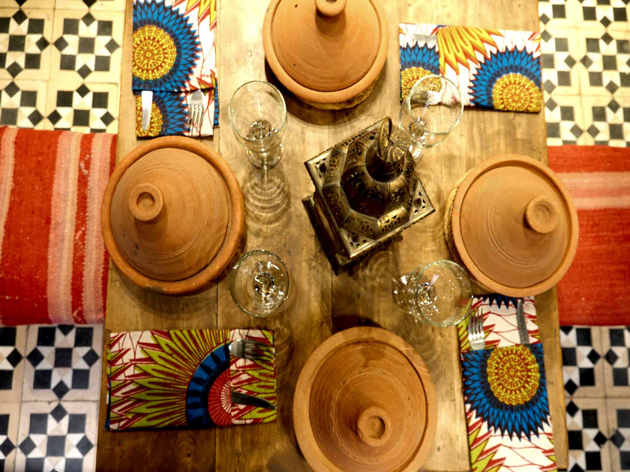Profitez d'une pause culinaire relaxante à Marrakech, sur notre terrasse donnant sur la Médina. Dégustez des jus frais, des smoothies et le fameux thé à la menthe marocain pour une touche rafraîchissante et revigorante.